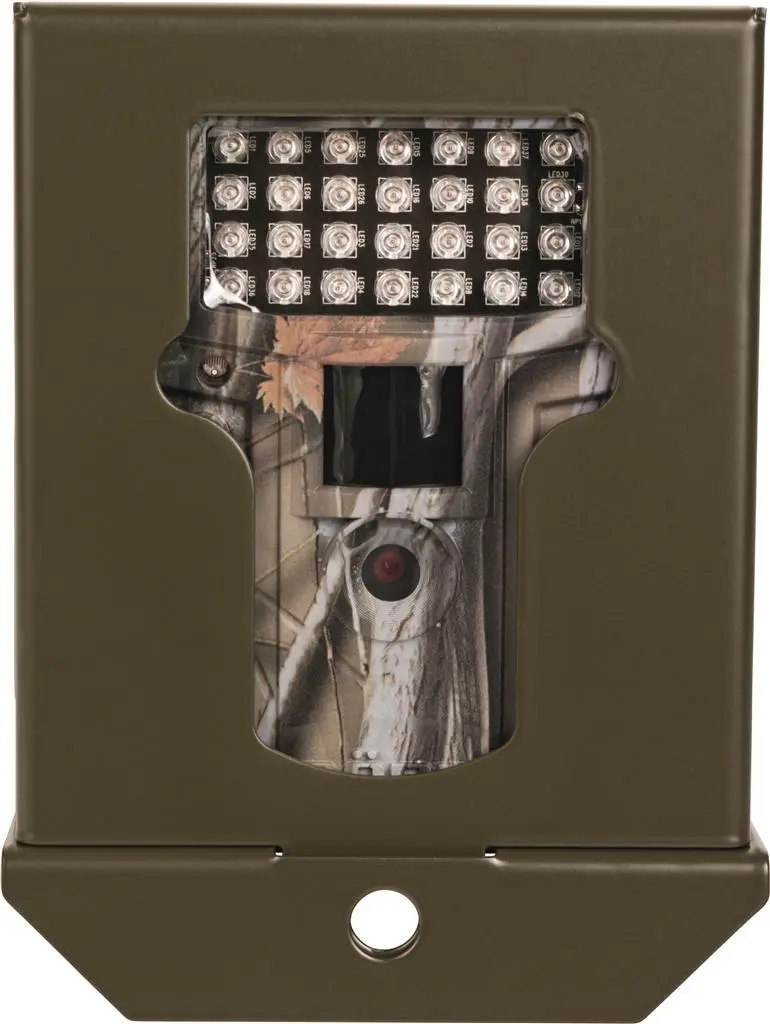 Eine Vielzahl von Öffnungen auf der Rückseite des Gehäuses bieten variable Befestigungsmöglichkeiten. Den besten Schutz vor Diebstahl erreichen Sie, wenn Sie das Gehäuse an einen Baum schrauben oder mit Schrauben und Dübeln an einer Wand befestigen.